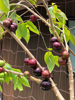2019/06/14 不思議フルーツ、ジャボチカバ ブラジル原産不思議フルーツ=ジャボチカバ。鈴なりに実をつけている。ぶどうのような味。ご宿泊いただいたお客様にお出ししています。幹から直接花が咲き、実になります。ここからは鳥さんと虫さんとの競争。食べきれない分はジャボチカバ酒にします。 tagPlaceholderカテゴリ: