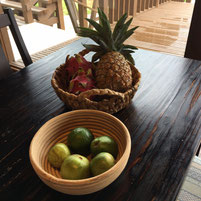2019/08/15 トロピカルフルーツをインテリアに トロピカルフルーツが旬です。さんにんリゾートでも毎日お客さまにお出ししています。お出しする前はインテリアのポイントとして活用。お花を生ける感覚で。グアバやパイナップルのなんともフレッシュな香りがお部屋いっぱいに広がります♪ tagPlaceholderカテゴリ: