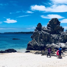 本部町には、ゴリラがチョップしているように見える岩が目印のダイビングスポットがあります。一度そう見えるようになると、もうそうにしか見えない!きれいな砂浜で、ソフトコーラルが見事な海なのですが、海況に恵まれないと白砂が舞い上がって真っ白に。そんな時はビーチコーミング!お気に入りのサンゴや流木、石を拾ってアートしちゃいましょう。無料駐車場、シャワー、トイレ、自動販売機あり。ドライブインレストランハワイのすぐ横です。海から上がったら、さんにんリゾートのランチ&SPAでさっぱりゆったり、いかがでしょう?