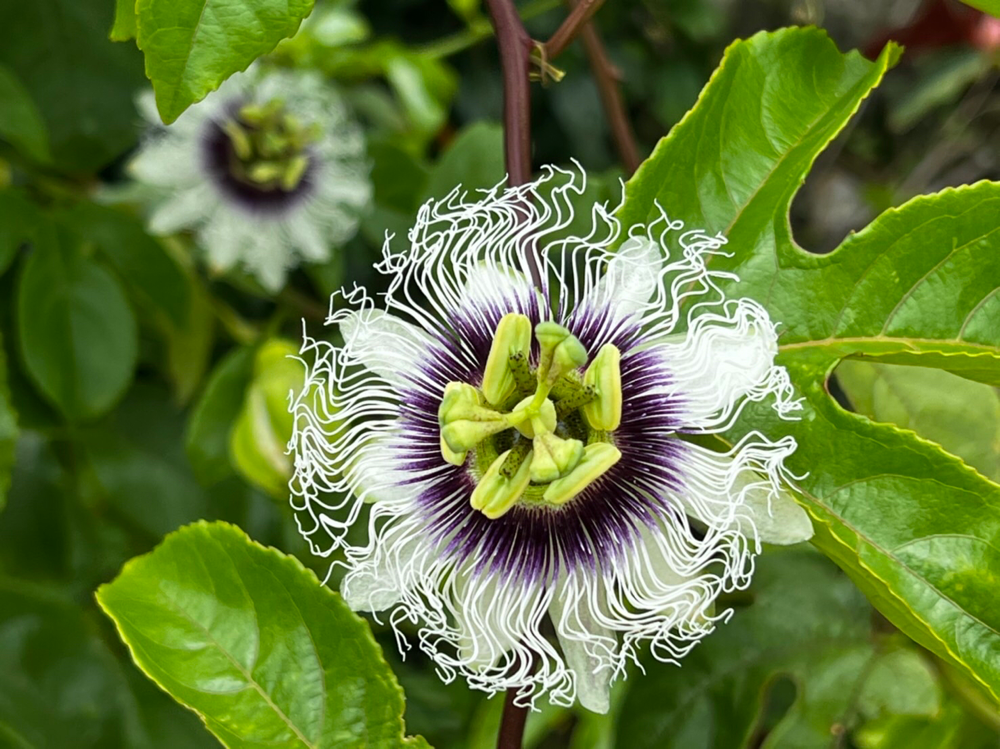 パッションフルーツが花盛りです👍今年はどれたげとれるかな?人工受粉頑張りま〜す!