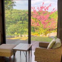 日本一早くに桜が開花する町、本部町。もとぶ八重岳桜祭りが1月17日から始まります。さんにんリゾートではツインのお部屋と、琉球畳の和室にそれぞれ1本ずつ植わっています。桜を独り占めできるって贅沢じゃないですか?ご予約はこちらから。