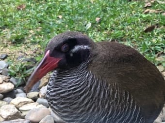 The Yambaru Kuina, also known as the Okinawa rail, is a flightless but fleet-footed bird found only in northern Okinawa. It is also the official symbol of Kunigami village. You may be lucky enough to glimpse one foraging in the forest, but the ecology center is the only place where the bird can be seen in captivity.